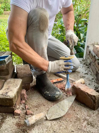 We are trying our best to keep with the vintage theme of the home and when we were building the base for our gardens, we had to take out some old patios that were set into the earth near the home. They were built with turn-of-the-century brick set in crushed granite, so it was a relatively easy job to remove them and gave us the matching material used to build brick steps on another part of the home, so it will have the same look and feel like it's always been there.